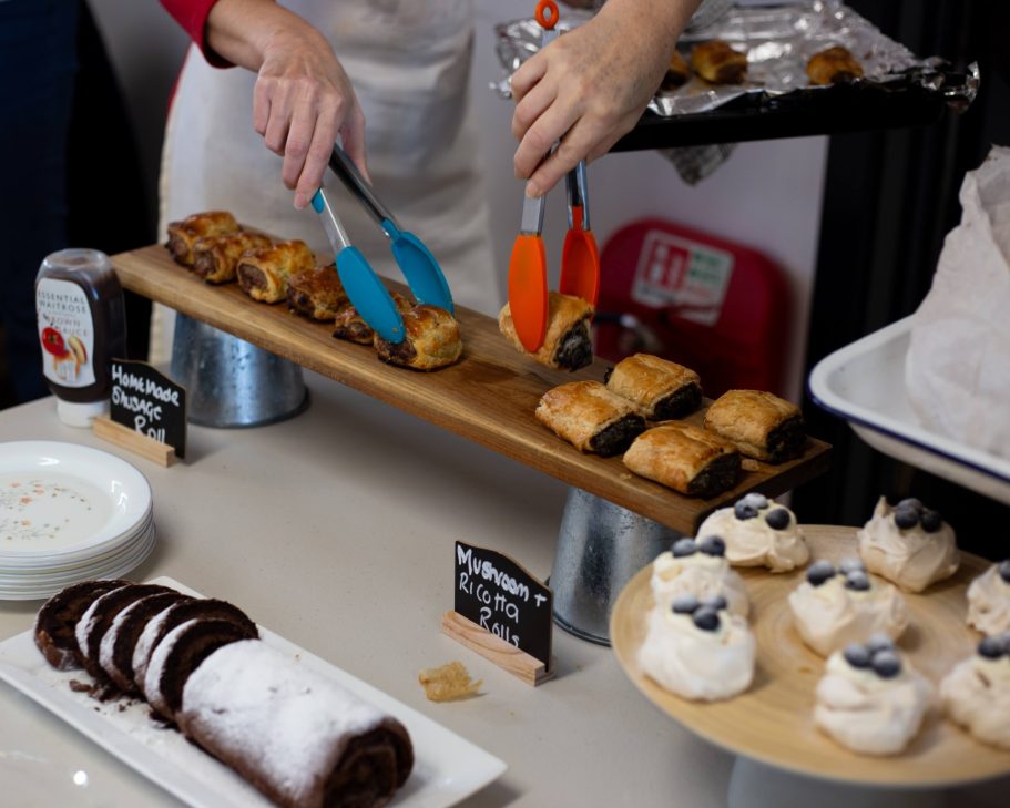 All our cakes and pastries are made by our team. We always have our famous sausage rolls and veggie/vegan rolls.